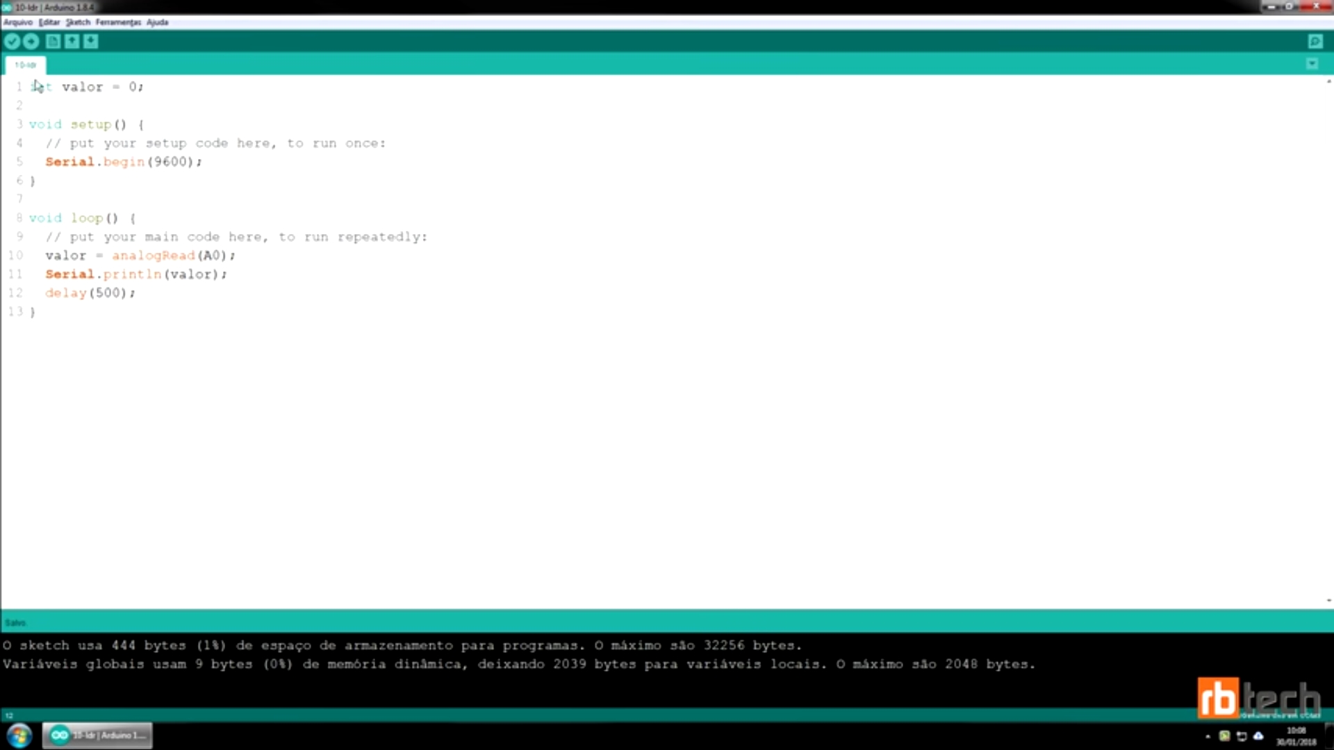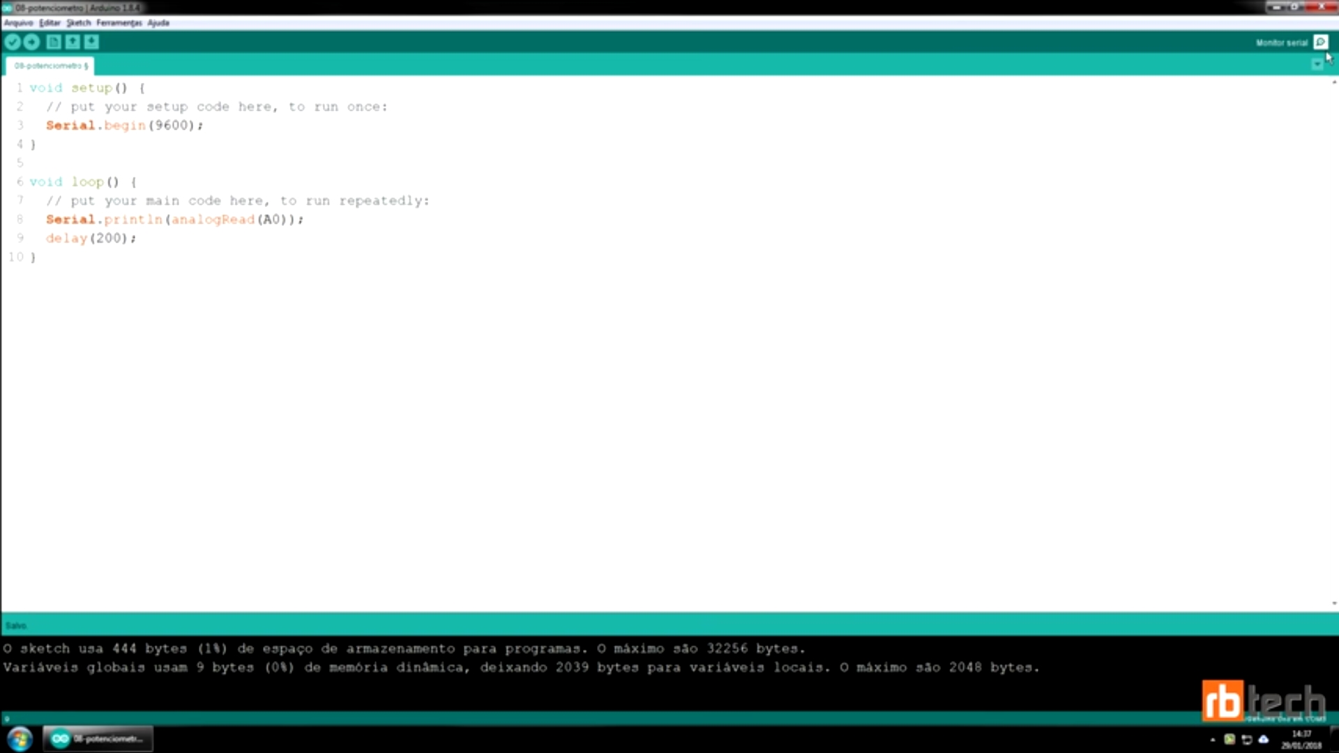 7° exemplo – Usando um potenciômetro – trabalhando com porta analógica e monitor serial