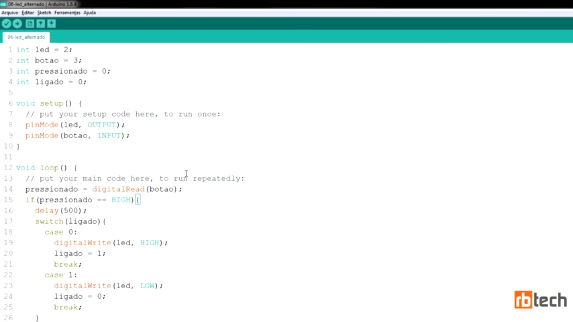 Daqui em diante, iremos praticar vários exemplos. Embora o código do exemplo aberto esteja digitado em algum lugar, inclusive no próprio SDK do Arduino, minha sugestão é : digite o código. Você pode até estar gastando tempo, que lhe ajudará a fixar melhor as funções. Acredite. Sou de uma escola que a gente aprendia fazendo; não copiando e colando.