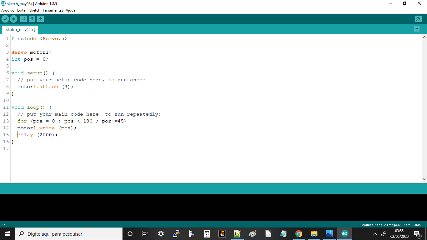 Note que é incluída a biblioteca Servo.h no cabeçalho do código. Esta ação pode ser feita de duas formas:
