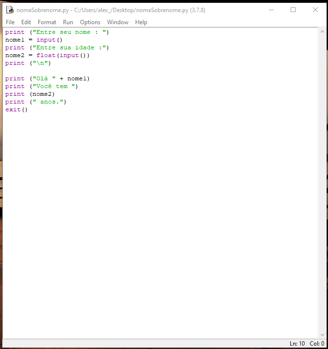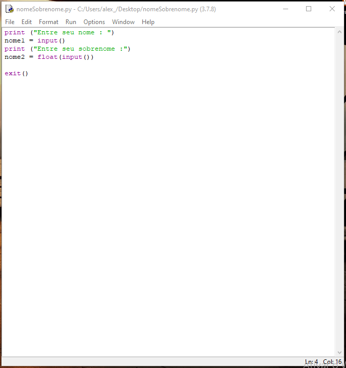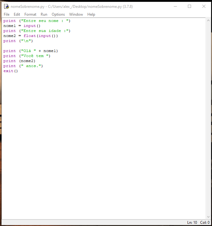 Dica pessoal: Acostume-se a colocar o comando exit() ao término de seu código. Você perceberá que isso é útil; ou, não! Você é quem sabe.