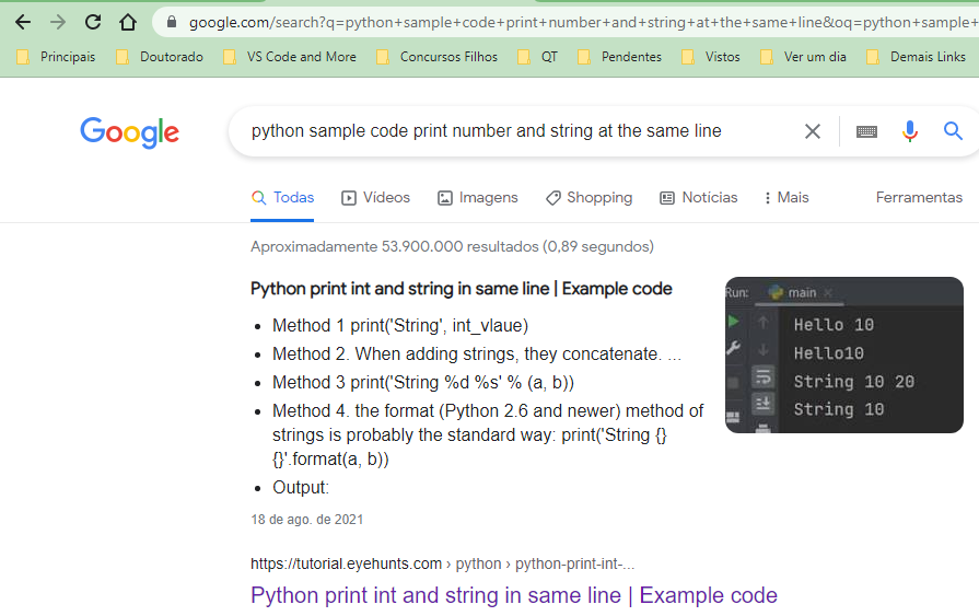 Veja o resultado como configuramos para escrever na mesma linha; e, note que foi usado a função str, que converteu um número para texto.