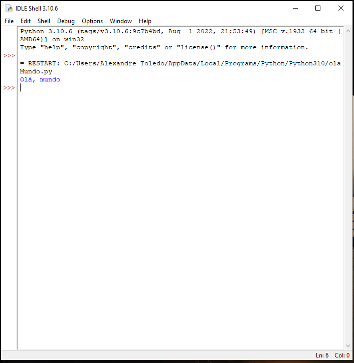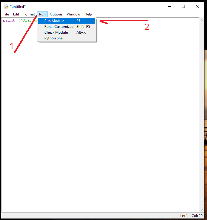 Para executar o seu programa, vá em Run > Run Module ou tecla <F5>, como segue abaixo:
