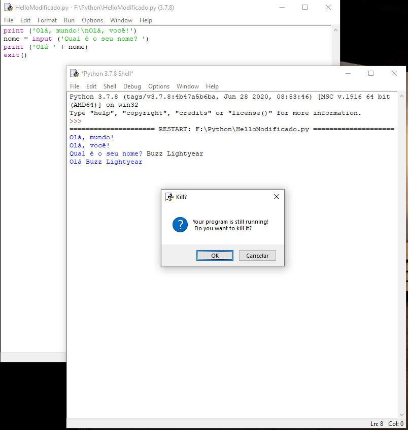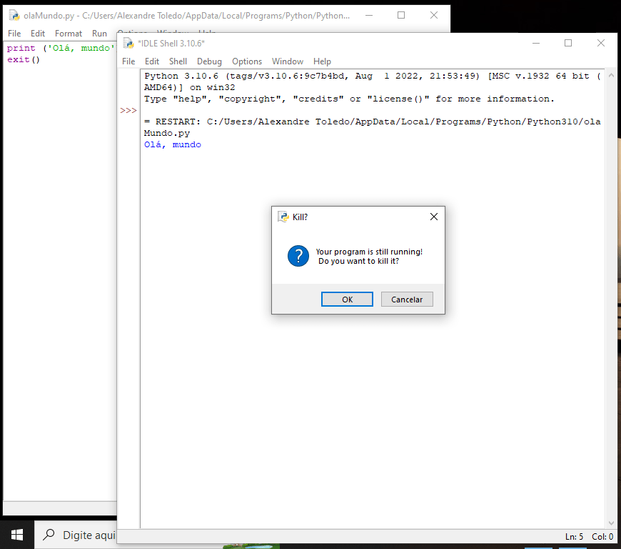 Agora , um comando (que também é função) chamado exit(), que existe no Python. Digite-o logo abaixo da função print, como segue na tela em segundo plano e exemplificado abaixo.