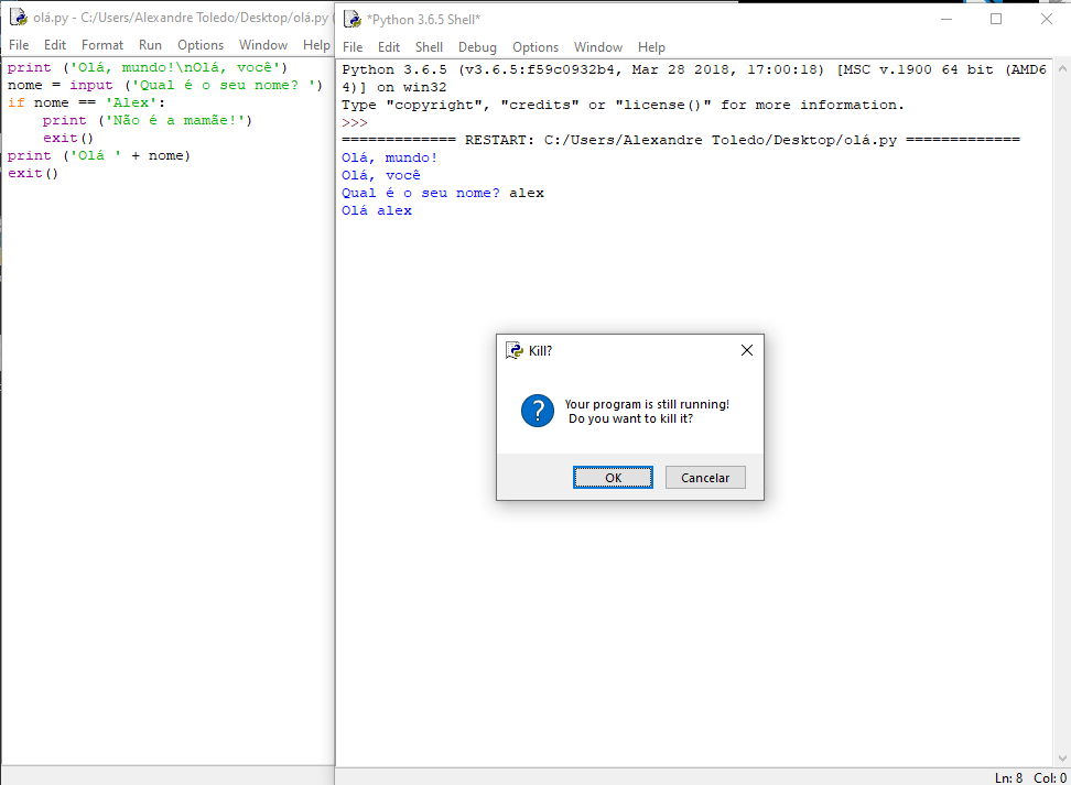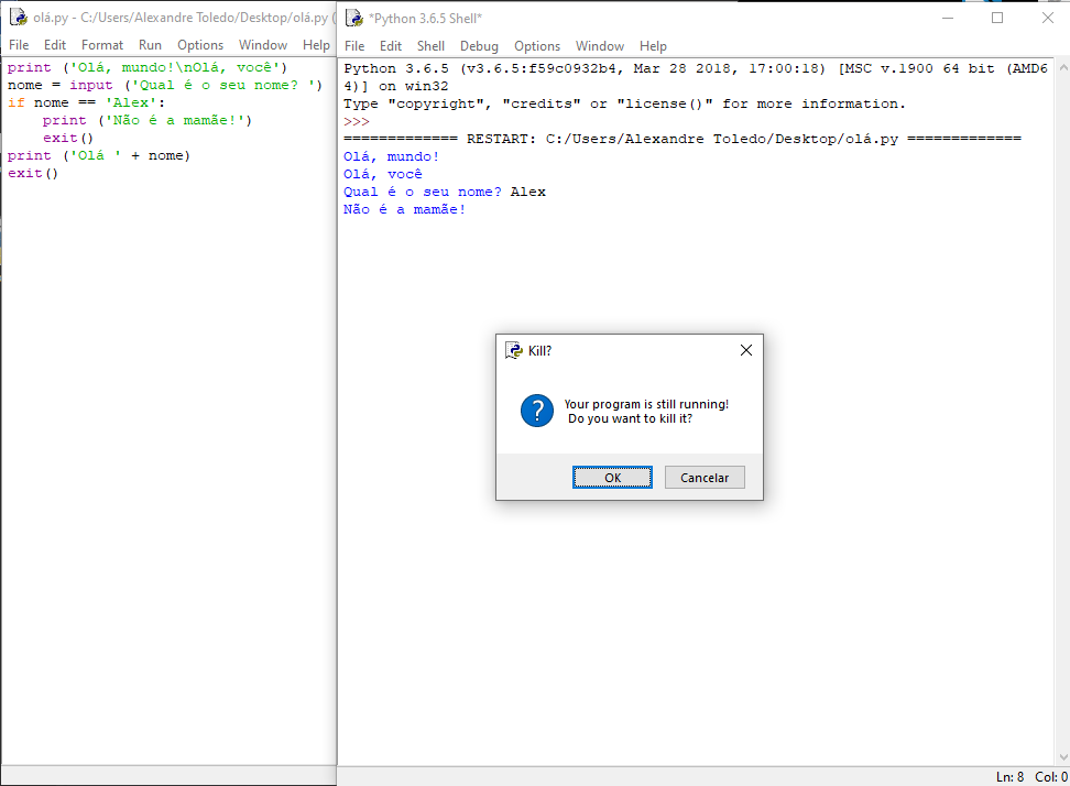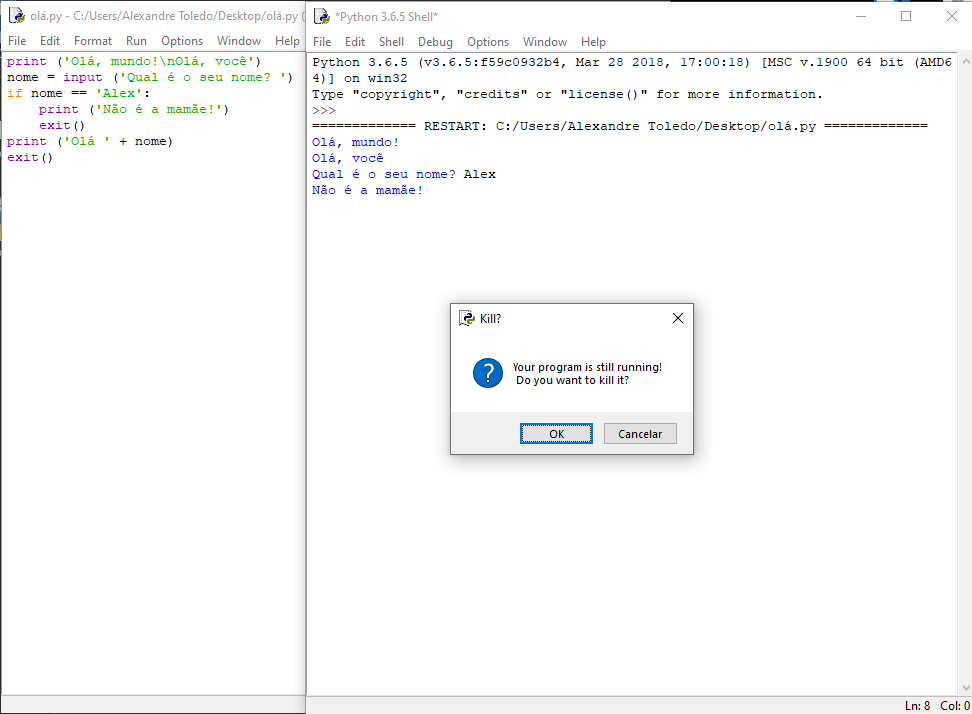 Se não identificou, lá vai… a diferença está no conteúdo que foi atribuído (armazenado) no identifier nome. O programa está rodando como deveria, embora, tanto Alex e alex não sejam a mamãe, mesmo!